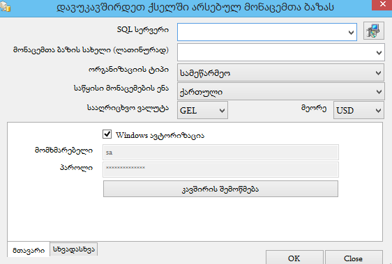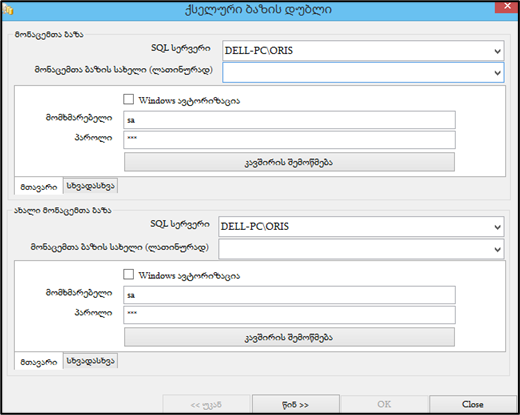 • 13.19 მჭირდება დახმარება გლობალური ქსელის ან ლოკალური ქსელის მეშვეობით პროგრამის ბაზასთან დასაკავშირებლად. მომაწოდეთ საჭირო პარამეტრები.