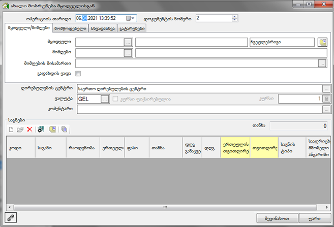 • 2.2.15 უკვე შესრულებულ ოპერაციას როგორ გავუნულო შექმნის თარიღი და თუ არის შესაძლებელი ეს ველი აღარ შეივსოს.