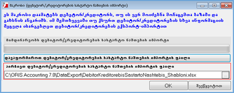 • 2.1.4 დებიტორ/კრედიტორების სია მივიიმპორტე და პაკეტურად როგორ გავხსნა ანგარიშები?