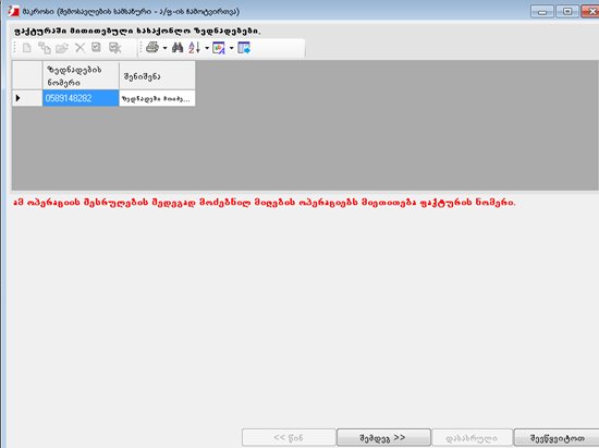 • 2.2.11 ბალანსგარეშე ანგარიშზე ვასრულებ გატარებას და გამოდის შეტყობინება მთავარი გატარება ვერ მოიძებნა.