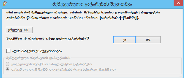 დააჭირეთ ღილაკს კი. ეკრანზე იხილავთ თქვენს მიერ აღდგენილ ოპერაციას. ოპერაციის შესანახად დააჭირეთ ღილაკს შევინახოთ.